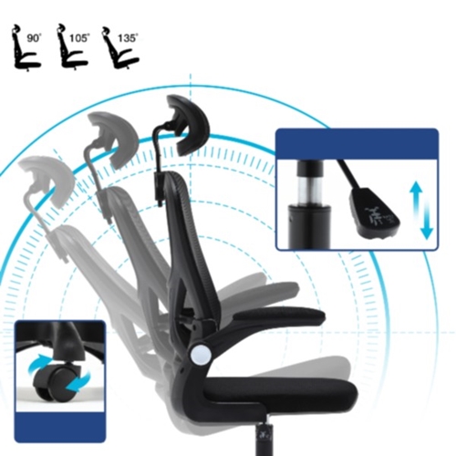 כיסא מנהלים עם ידיות מתכווננות ומשענת ראש דגם HI-T