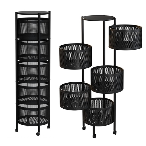 עגלת שירות ניידת בעלת 5 תאי אחסון בצבע שחור