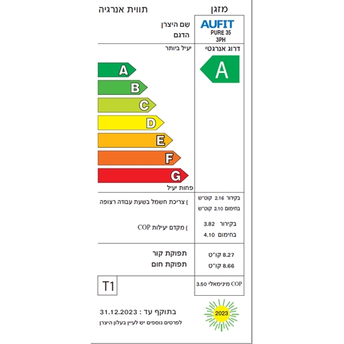 מזגן עילי דגם AUFIT PURE 35 3PH WIFI AUFIT - מידע נוסף