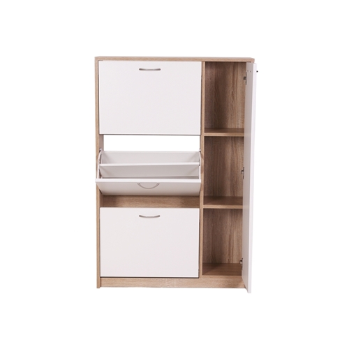 מצד שמאל 3 תאים לאחסון נעליים כולל דלתות.