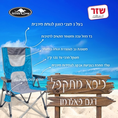 - כיסא מתקפל ממתכת 3 מצבים כחול פאלרמו Australia Camp Palermo