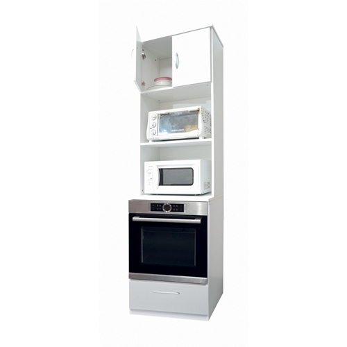 ארון גדול נייד לתנור בילט אין בשילוב ארונית עליונה לאחסון.