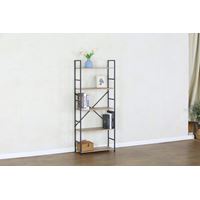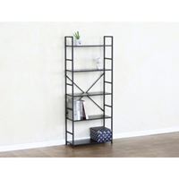 השילוב בין מסגרת מתכת שחורה למדפי עץ מעניק מראה אלגנטי ויוקרתי עם נגיעה תעשייתית.