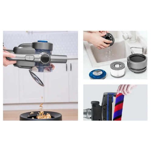 ה- H8 PLUS בעל מכל ריקון אבק נוח לשימוש, בלחיצת כפתור תוכלו לרוקן את הלכלוך מבלי ללכלך את הידיים, עם מסנן וראש מברשת הניתנים לשטיפה, קלים לניקוי ועמידים לאורך זמן, עם ראש מברשת קל לפירוק.